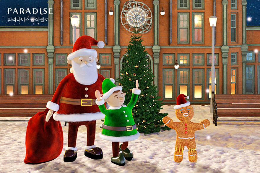 파라다이스시티의 크리스마스에는 특별한 깜짝 손님과 함께하는 이벤트가 진행되는데요. 바로 AR 카메라를 통해 산타클로스와 요정, 진저브레드를 만나는 ‘GRAND SANTA EXPRESS PRIZE EVENT’입니다. 물의 도시 베네치아를 모티브로 하여 트리의 따뜻한 불빛이 강물 위로 아름답게 일렁이는 ‘와우존’, SANTA EXPRESS가 중앙에 위치하여 상상력을 자극하는 ‘파라다이스워크’, 유럽의 크리스마스 마켓 분위기가 고스란히 느껴지는 ‘플라자’, 총 세 가지 스팟에서 귀여운 캐릭터들을 만나 보세요.
