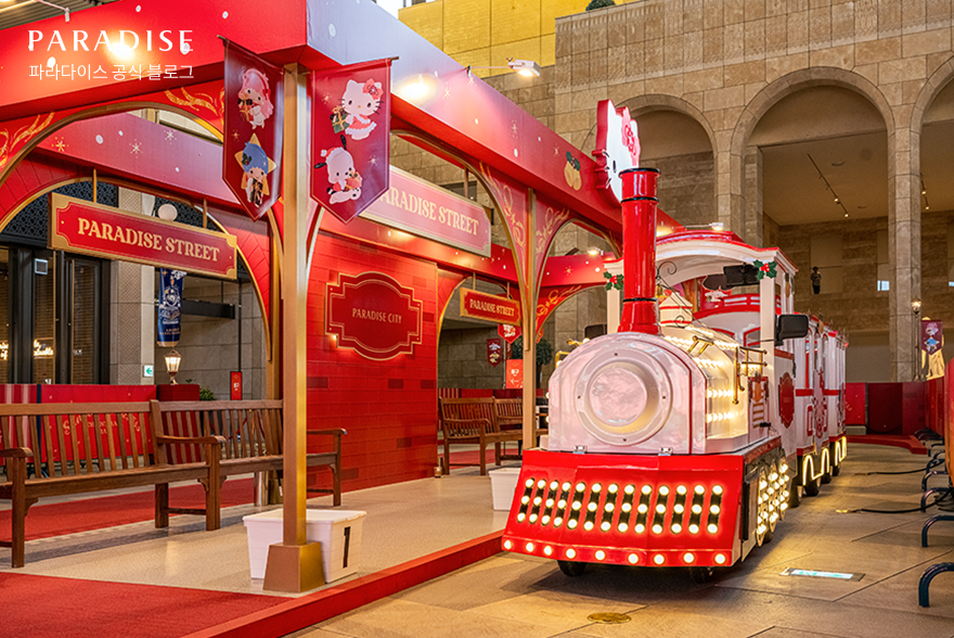 특히 아이들의 마음을 사로잡은 이벤트도 있었는데요. 바로 헬로키티, 마이멜로디 등 인기 캐릭터 테마의 기차를 운행하는 ‘산리오캐릭터즈 크리스마스 트레인’이었습니다. 화려한 크리스마스 장식과 산리오 캐릭터로 장식된 기차가 파라다이스시티 플라자 광장 내부 곳곳을 운행하고 있는데요. 제한 속도 4km로, 전 연령이 탑승할 수 있어 온 가족의 특별한 추억을 만들기에 제격이었습니다.