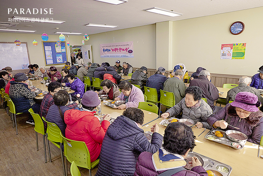 연중 해가 가장 짧은 절기인 동지는 겨울의 정점을 상징하기도 하는데요. 동지 하면 빼놓을 수 없는 음식이 바로 팥죽입니다. 복지관 한 켠에서 발견한 예쁜 시화처럼 고운 미소를 띤 어르신들이 한 분씩 경로식당을 방문해 주셨습니다. 한 그릇 가득 담은 팥죽을 맛보며, 연신 엄지를 들어 보이고선 깨끗하게 그릇을 비워주셨습니다.