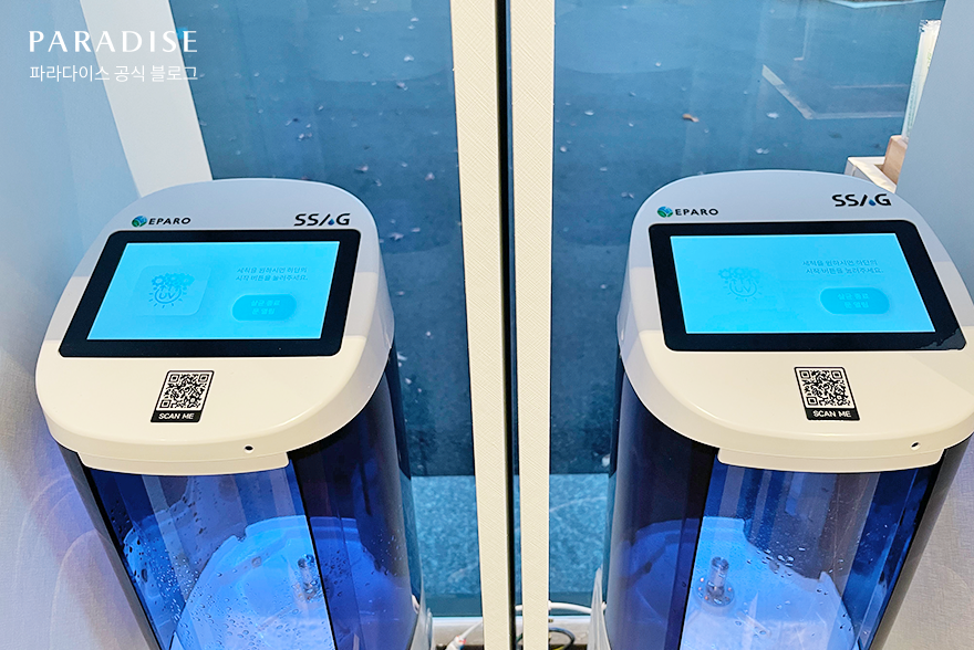 파라다이스 사내 카페가 더욱 의미 있는 이유는 바로 친환경 라이프스타일을 실천하는 매장이라는 점입니다. 이곳은 파라다이스그룹 임직원뿐만 아니라 일반 고객들에게도 개인 텀블러 사용을 적극 독려하고 있습니다. 저 역시 개인 텀블러를 사용하면서도 관리가 번거롭다고 생각했는데요. 이런 고민을 덜어주는 특별한 장치가 카페에 마련되어 있었습니다.