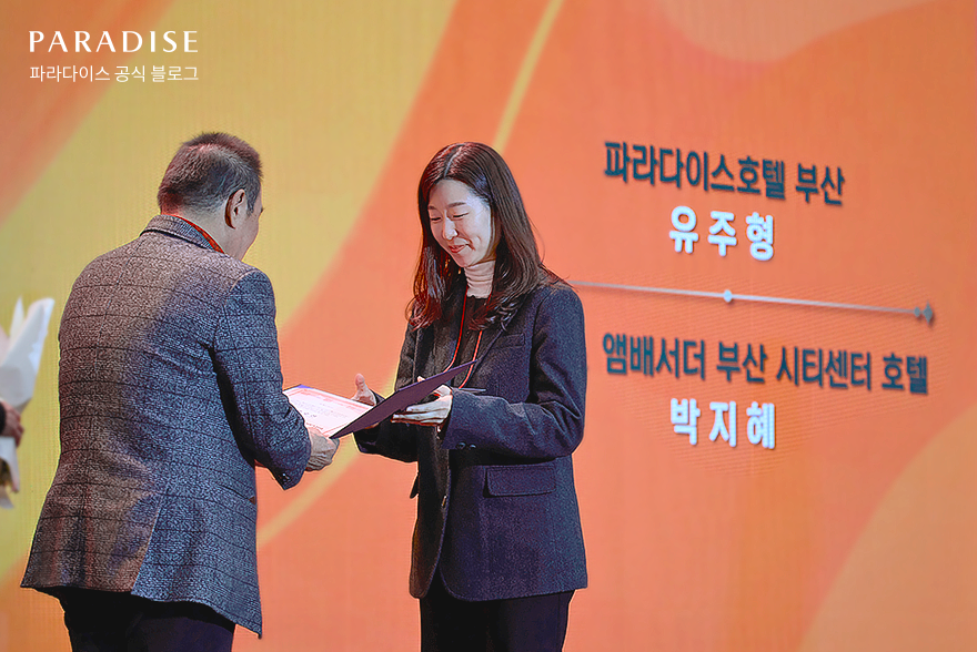 파라다이스 호텔 부산은 이전에도 관광공사 등 여러 기관에서 MICE 우수기업으로 선정된 바 있는데요. 이번에는 MICE 분야의 트렌드를 선도하고, 성공적인 행사 개최로 산업 발전에 기여한 공로를 인정받아 부산시장 표창을 받았습니다.
