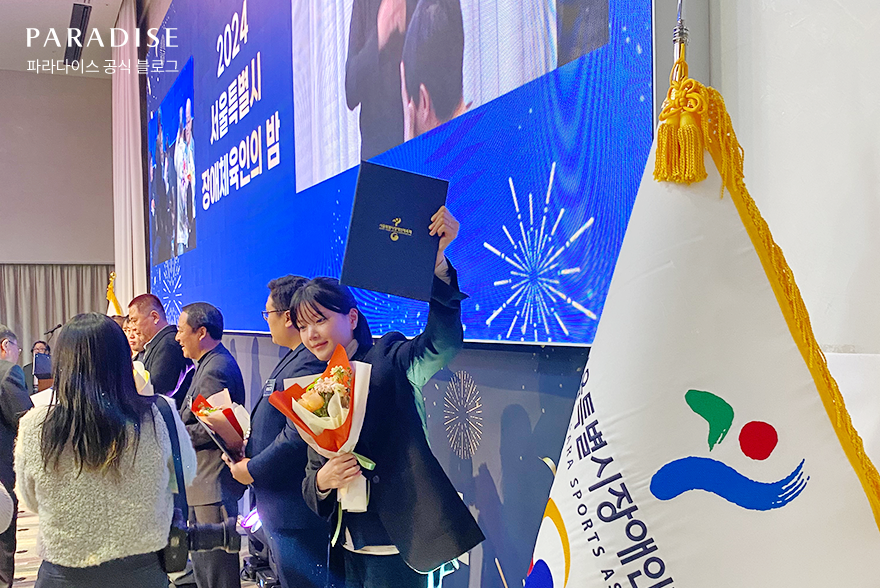 파라다이스 카지노 워커힐이 지난 12월 9일 열린 서울특별시 장애인체육회가 주최한 ‘24년 서울특별시 장애체육인의 밤’ 행사에서 서울특별시장애인체육회장 표창을 수상했습니다. 이번 행사는 한 해 동안 서울시 장애인 체육 발전에 이바지한 선수와 지도자, 관계자들의 노고를 격려하고 화합을 다지는 자리로 마련되었는데요. 파라다이스 카지노 워커힐 인사팀은 장애인 채용의 새로운 패러다임을 제시한 공로를 인정받아 수상의 영예를 안았습니다.