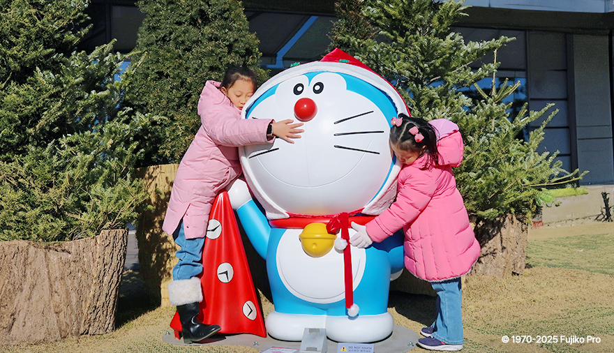 정원 곳곳에는 다양한 모습의 도라에몽이 자리하고 있었습니다. 대나무 헬리콥터를 머리에 쓴 도라에몽, 빅 라이트, 스몰 라이트를 든 도라에몽, 옷 갈아입기 카메라를 들고 있는 도라에몽까지 마치 만화 속에서 바로 튀어나온 듯한 생동감 넘치는 도라에몽을 바라보며 아이들의 얼굴에는 웃음꽃이 활짝 피어났습니다.