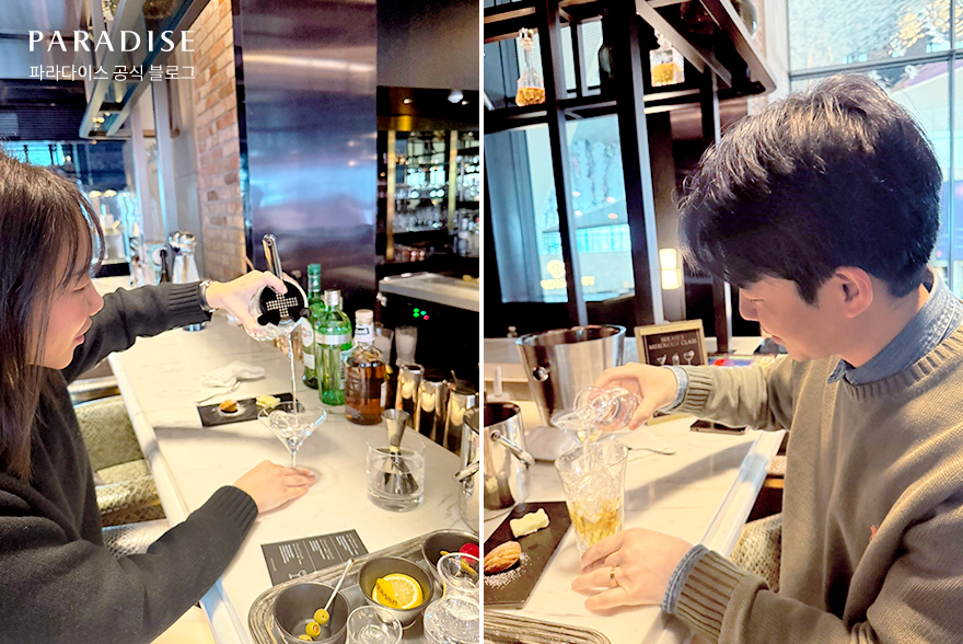 그중에서도 호텔 라운지&바 ‘새라새’에서 진행하는 믹솔로지 클래스는 투숙객이 직접 칵테일을 만들어보는 색다른 즐거움을 선사하는 프로그램입니다. 고객의 라이프스타일과 취향을 반영해 구성한 칵테일과 집에서도 쉽게 따라 할 수 있는 레시피로 더욱 감각적인 경험을 제공하는데요. 기대감을 안고 파라다이스시티 PTIC 파트의 홍나리 매니저 부부가 클래스 현장을 방문했습니다. 아트파라디소에서의 특별했던 순간을 함께 따라가 볼까요?
