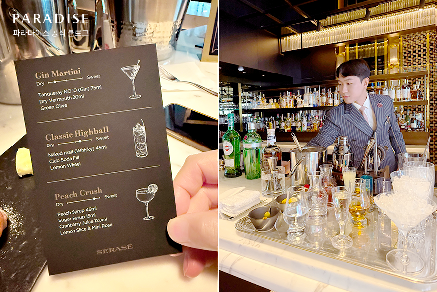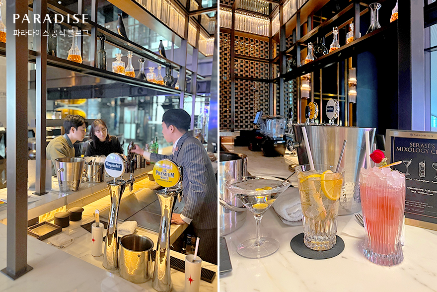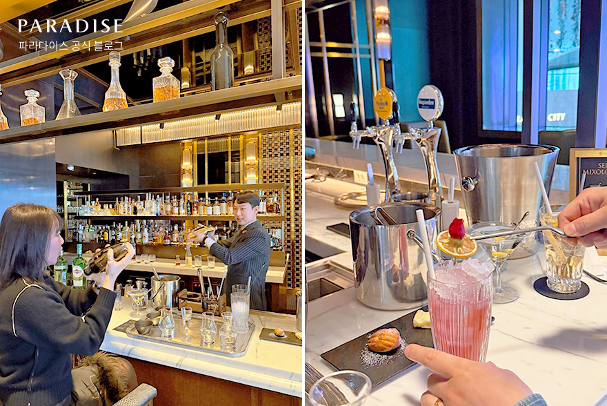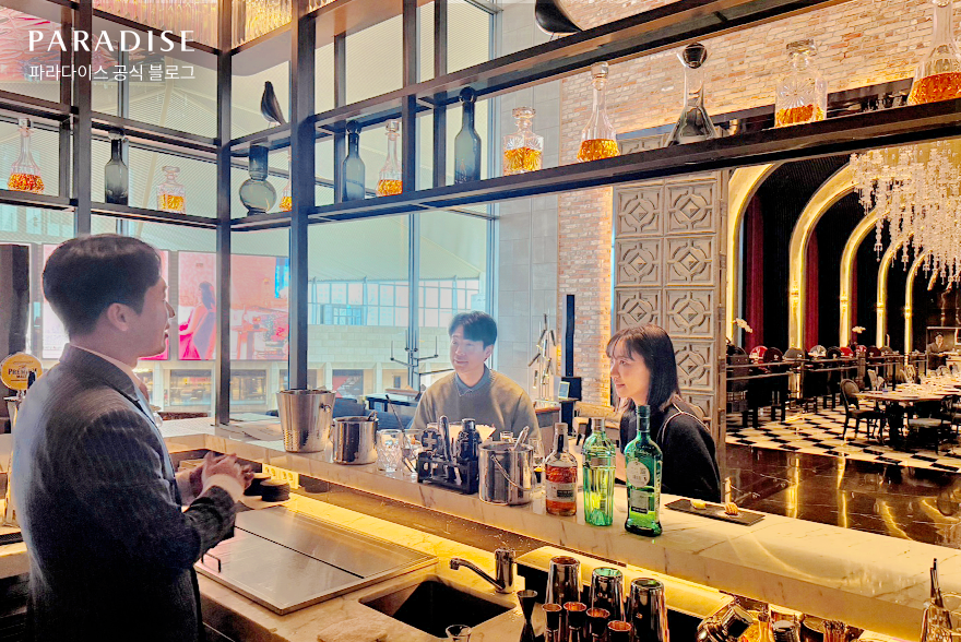 그중에서도 호텔 라운지&바 ‘새라새’에서 진행하는 믹솔로지 클래스는 투숙객이 직접 칵테일을 만들어보는 색다른 즐거움을 선사하는 프로그램입니다. 고객의 라이프스타일과 취향을 반영해 구성한 칵테일과 집에서도 쉽게 따라 할 수 있는 레시피로 더욱 감각적인 경험을 제공하는데요. 기대감을 안고 파라다이스시티 PTIC 파트의 홍나리 매니저 부부가 클래스 현장을 방문했습니다. 아트파라디소에서의 특별했던 순간을 함께 따라가 볼까요?