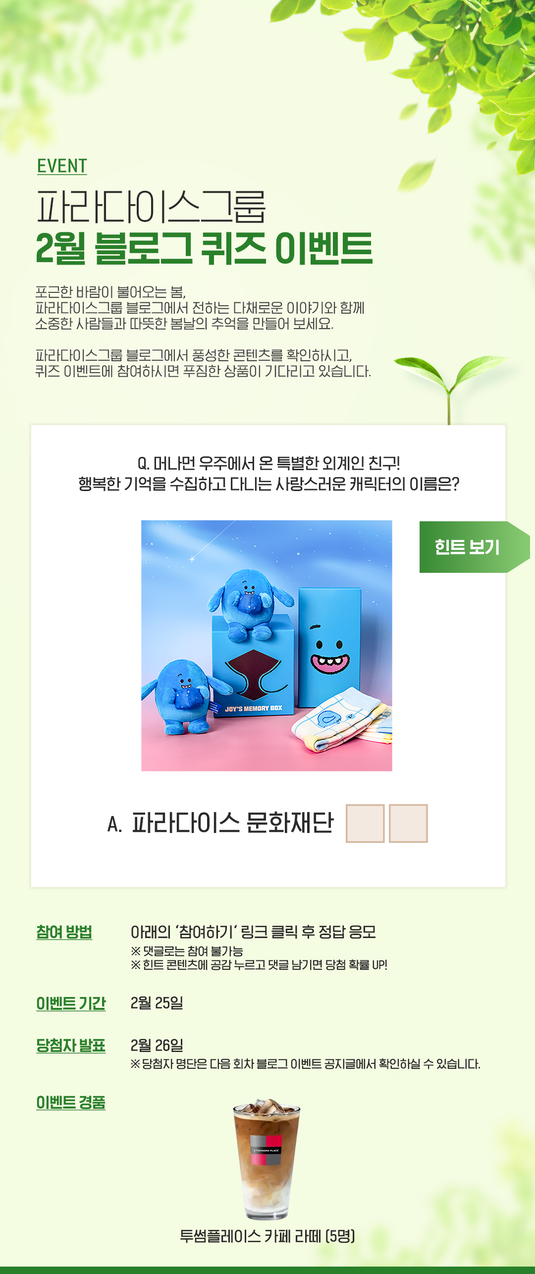 | 파라다이스그룹 2월 블로그 이벤트 (1회차) (8) | 2025.02.24 |