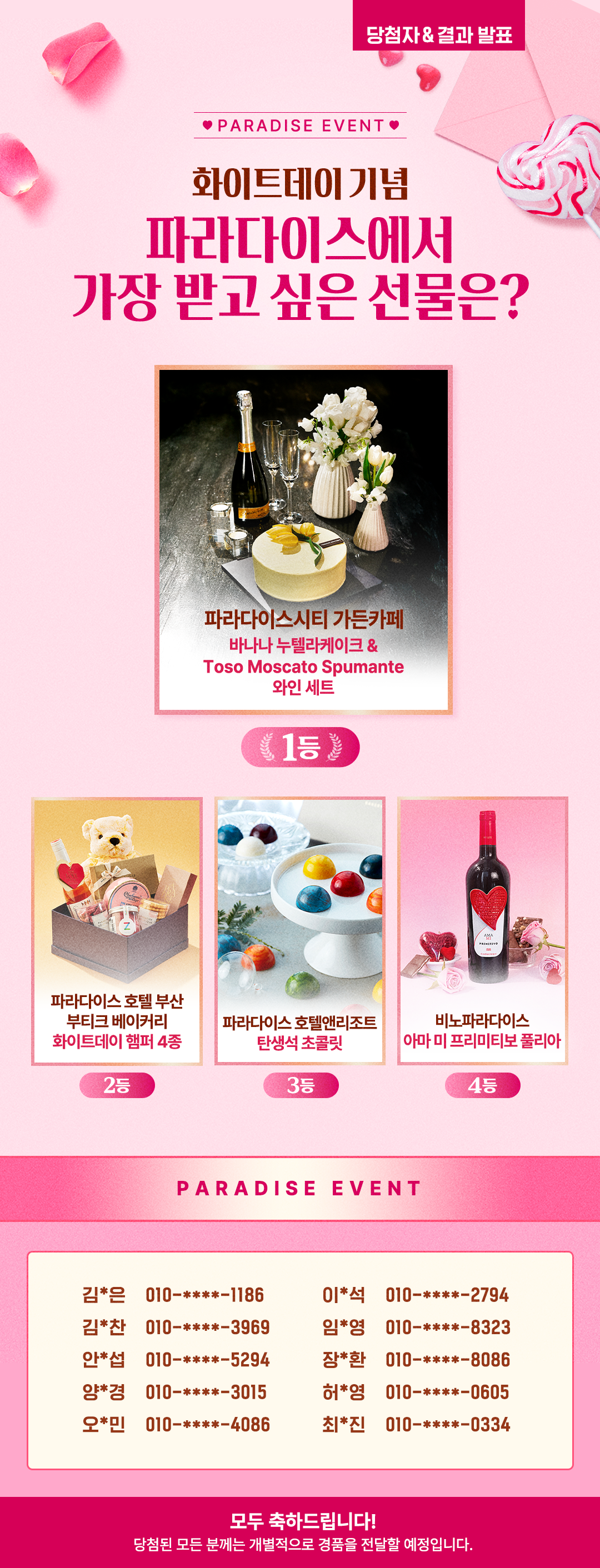 ‘화이트데이’에 가장 받고 싶은 파라다이스의 선물 투표 이벤트 당첨자 발표!