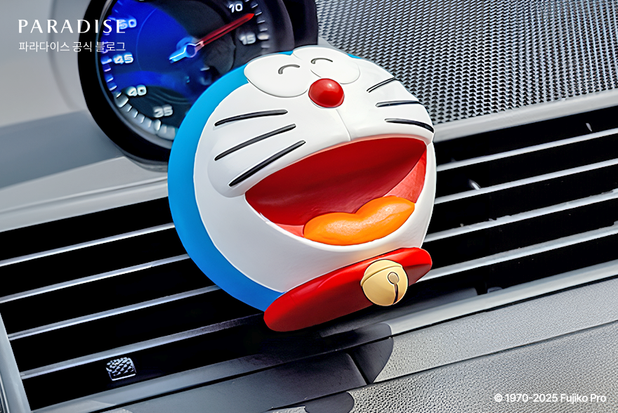 ‘해피 파라다이스 with 도라에몽’ 패키지는 ‘도라에몽 차량용 방향제’를 제공하는 특별한 혜택이 포함되어 있는데요. 환한 미소의 귀여운 도라에몽 캐릭터가 인상적인 제품으로 차량 송풍구나 원하는 장소 어디든 손쉽게 배치할 수 있습니다. 은은한 코튼 향과 상큼한 시트러스가 어우러진 ‘프레쉬 코튼’, 그리고 유칼립투스와 시트러스가 조화로운 ‘미드섬머 나잇’ 중 랜덤으로 제공되어 언제 어디서든 향기로운 시간을 보낼 수 있습니다.