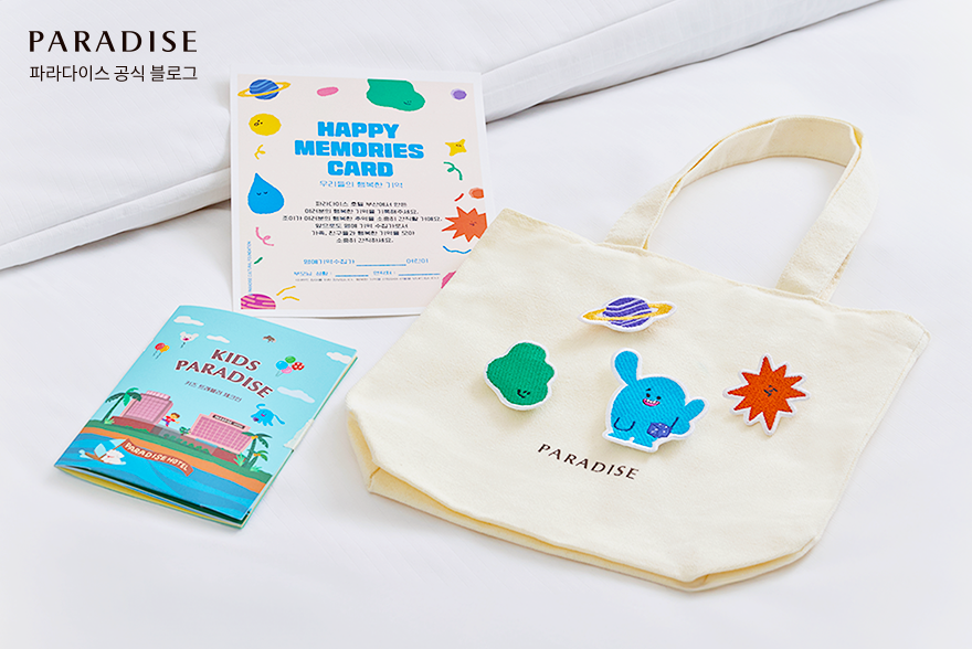 체크인 시에는 파라다이스 문화재단의 캐릭터 ‘조이’가 그려진 키즈 에코백이 제공되는데요. 일회용 비닐 대신 재사용 가능한 가방을 활용함으로써, 아이들도 손쉽게 환경 보호에 동참할 수 있습니다. 특히 자수 와펜을 제공해 세상에 하나뿐인 나만의 에코백을 만들어 애정을 가지고 지속적으로 사용할 수 있게 만들었는데요. ‘KIDS TRAVELLER CHECK-IN with 조이’ 프로모션과 함께 소중한 자녀와 파라다이스 호텔 부산에서 의미 있는 ECO 여행을 경험해 보시길 바랍니다.