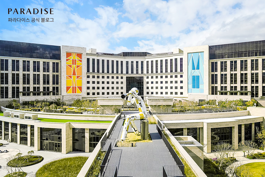 먼저 소개할 곳은 봄기운으로 가득한 파라다이스시티입니다. 이곳은 품격 있는 룸&스파와 다이닝, 수영장, 쇼핑 등 다채로운 엔터테인먼트를 즐길 수 있는 프리미엄 리조트인데요. 감각적인 건물과 조형물, 그리고 자연이 조화롭게 어우러져 계절마다 색다른 뷰를 자랑합니다.
