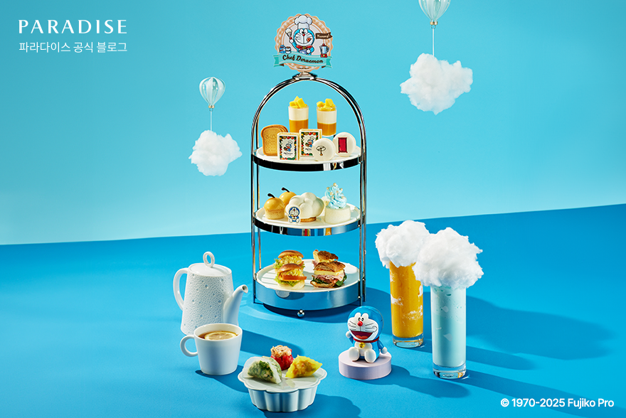 파라다이스 호텔 부산의 본관 1층에 위치한 로비라운지 크리스탈 가든에서 캐릭터의 귀여움을 완벽하게 녹여낸 ‘도라에몽 애프터눈티 세트’를 만나 보실 수 있습니다. 도라에몽의 대표 아이템인 ‘암기빵’을 형상화한 디저트와 미니 케이크 등 팬이라면 누구나 좋아할 만한 아기자기한 비주얼의 디저트가 눈길을 사로잡는데요. 에프터눈티 세트와 함께 즐길 수 있는 스페셜 음료는 구름 위를 떠다니는 듯한 시각적 즐거움을 더해줍니다. 애니메이션 속 모습을 그대로 재현한 듯한 아기자기한 디저트들과 동심 가득한 시간을 완성해 보세요.