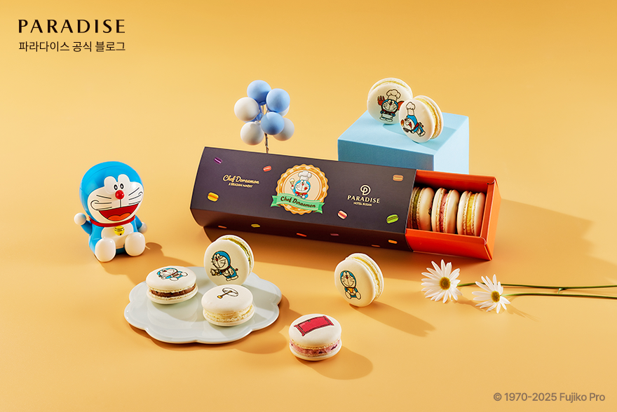 이어서 파라다이스 부티크 베이커리의 ‘도라에몽 마카롱 세트’를 소개합니다. 파라다이스 호텔 부산의 시그니처 디저트를 선보이는 이곳은 전문 호텔 파티시에가 정성껏 준비한 고급스럽고 맛있는 케이크와 베이커리를 제공하는데요. 이번 시즌에는 캐릭터의 다양한 표정을 담은 비주얼과 다채로운 맛으로 입안 가득 행복을 전하는 ‘도라에몽 마카롱 세트’를 만나볼 수 있습니다. 향긋한 아카시아 녹차, 부드러운 바닐라 화이트, 상큼한 리치 산딸기, 고소하고 새콤한 레몬 마스카포네 등 총 8가지 맛으로 구성되어 있어 선택의 즐거움까지 더했는데요. 보기만 해도 미소 짓게 되는 도라에몽 마카롱으로 달콤한 순간을 즐겨보세요.