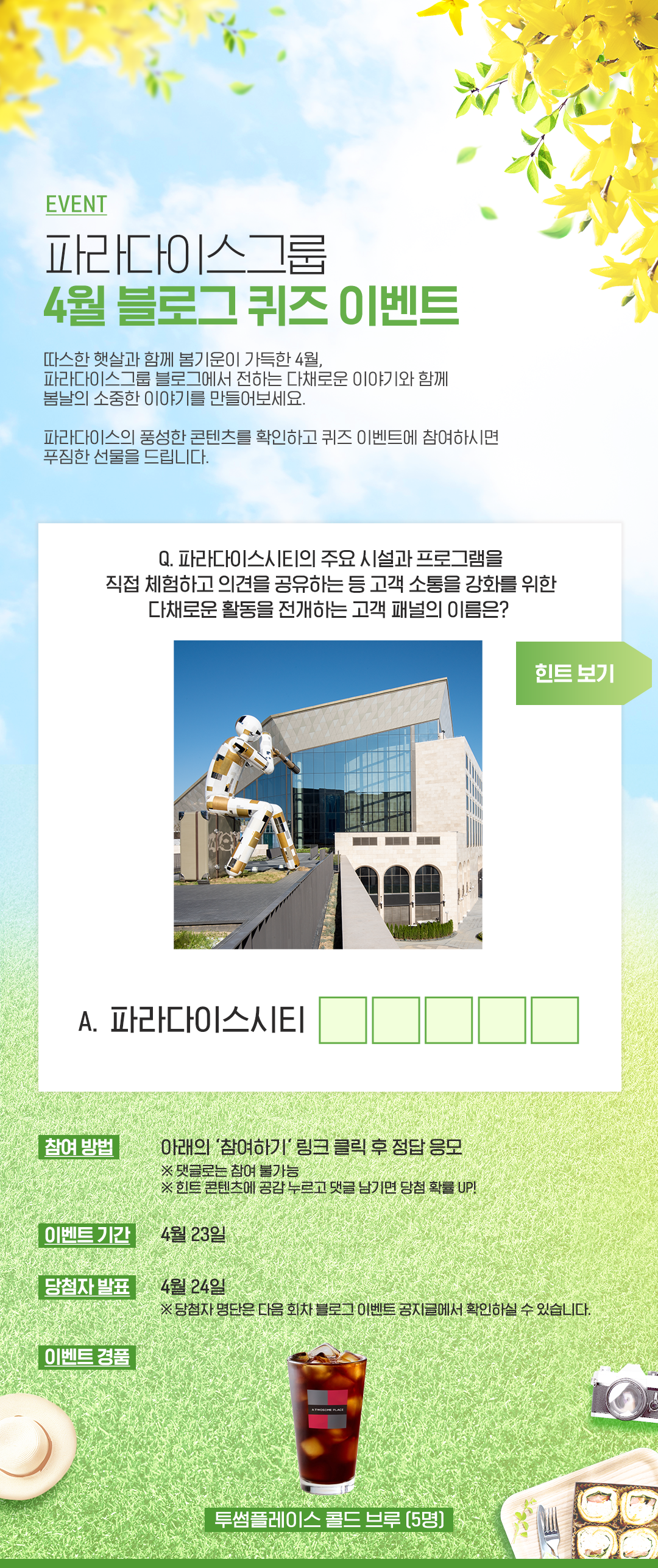 파라다이스그룹 4월 블로그 이벤트