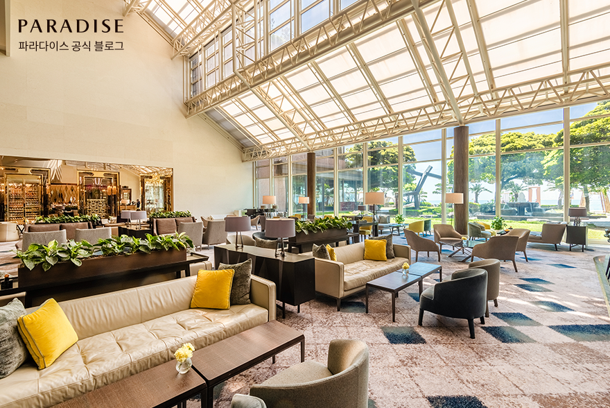 해운대 해변 바로 앞에 자리한 파라다이스 호텔 부산은, 눈앞에 펼쳐지는 탁 트인 바다 풍경과 함께 고요한 쉼과 새로운 활력을 전하는 여행지입니다. 로비 라운지 ‘크리스탈 가든’에서는 통창 너머로 해운대의 바다와 하늘이 한눈에 들어와, 이곳에서의 하루를 더욱 여유롭게 만들어주는데요. 낮에는 햇살이 가득 드는 창가 자리에서 여유로운 티타임을, 밤에는 은은한 해운대 야경을 감상하며 로맨틱한 시간을 즐겨보세요.