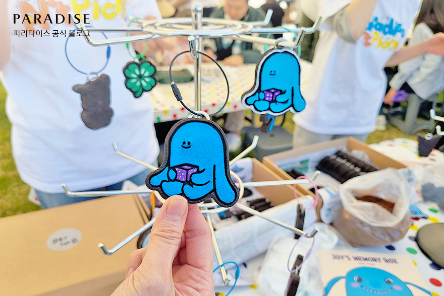 다양한 체험이 이어지는 축제 한쪽에는 파라다이스의 ESG 활동을 체험할 수 있는 부스도 만나볼 수 있었습니다. 바로 커피를 내리고 남은 찌꺼기인 ‘커피박’을 활용해 키링을 만들어보는 프로그램이었는데요. 파라다이스그룹 사옥 1층의 청각장애인 바리스타 카페 ‘카페스윗’에서 수거한 커피박을 업사이클링해, 불필요한 폐기물을 줄이고 탄소 발생도 최소화할 수 있도록 기획된 체험입니다.