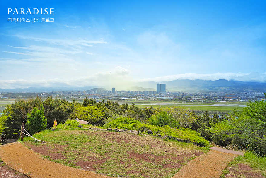 첫 번째로 추천할 곳은 제주공항에서 차로 단 10분이면 도착하는 도두봉입니다. 이곳은 제주도민들 사이에서도 꾸준히 사랑받는 산책 명소이자 뷰 맛집이랍니다. 화창한 오후에 도두봉에 오르니 미세먼지 하나 없는 맑은 하늘이 저를 반겨주었습니다. 제주의 바람이 불어오고, 멀리서는 비행기가 날아가는 장면이 펼쳐져 마치 공항 전망대에 오른 기분이 드는 곳입니다.