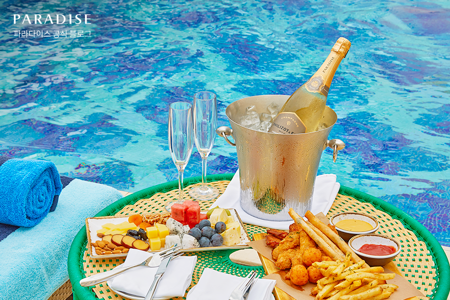 물놀이 후 간단한 휴식을 즐기고 싶다면, 아웃도어 풀과 맞닿은 ‘풀사이드 바’에서 간단한 스낵과 시원한 음료를 즐겨보세요. 딸기 스무디, 망고 바나나 스무디 등 제철 과일을 활용한 시즌 한정 음료는 물론, 아웃사이드 바에서 즐기는 칵테일과 샴페인 샹그리아까지 더해져 여유로운 시간을 완성해 줍니다. 기분 좋은 바람이 스치는 요즘, 파라다이스시티에서 계절의 특별한 순간을 온전히 누려보시길 바랍니다.