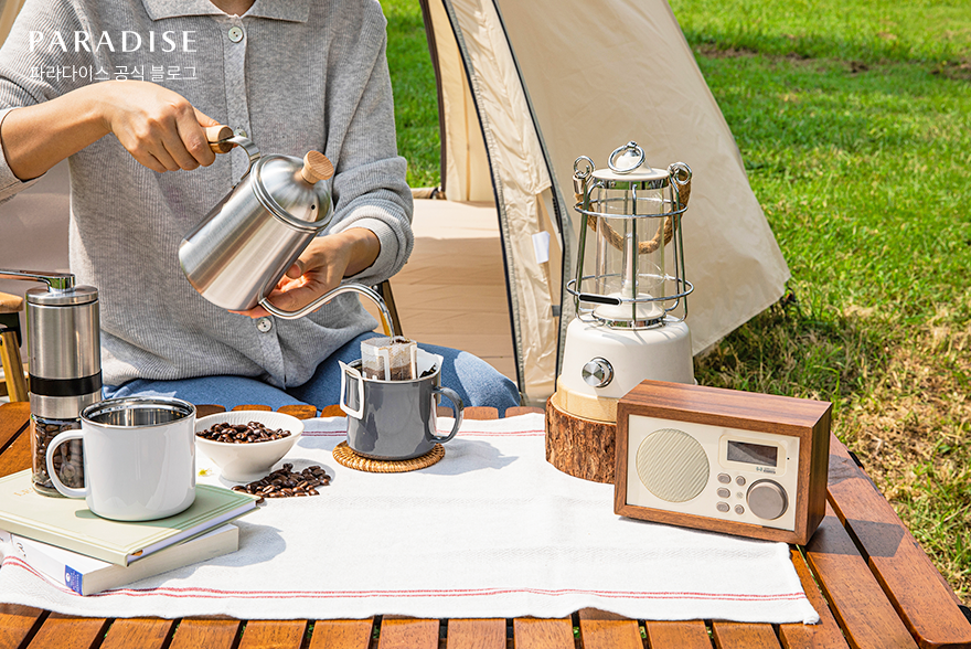 자연 속에서 보내는 하루를 더욱 특별하게 만들어 주는 건 작은 디테일입니다. 감성을 더해주는 아이템 하나만으로도 캠핑의 분위기는 훨씬 풍성해집니다. 햇살 가득한 낮 시간, 클래식한 디자인의 레트로 라디오나 스피커를 꺼내보세요. 자연 속에 잔잔히 퍼지는 음악은 고요한 풍경과 어우러져 그 순간을 더욱 감성적으로 만들어줍니다. 감미로운 재즈 한 곡, 혹은 여행과 어울리는 플레이리스트를 들으며 여유로운 한때를 즐겨보는 건 어떨까요?