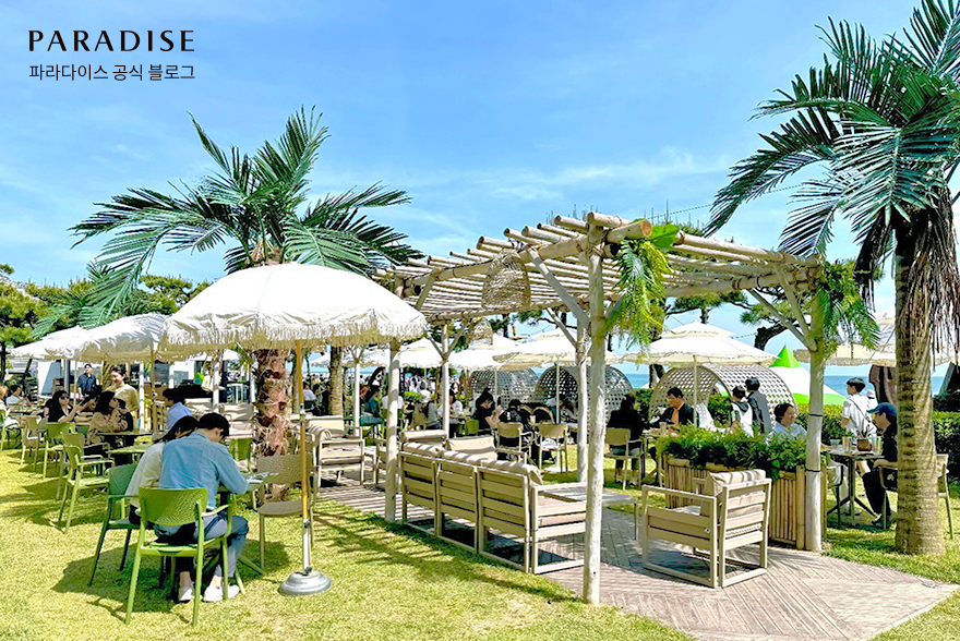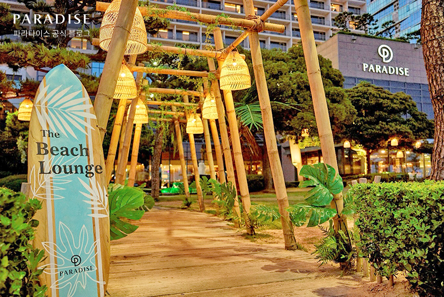 좋은 계절을 만끽하기 위해 찾은 곳은 파라다이스 호텔 부산의 더 비치 라운지입니다. 해운대 바다를 품은 오션 가든으로 매년 특정 시즌에만 만날 수 있는 이색적인 공간인데요. 발리를 주제로 야자수, 라탄 조명에 서퍼 보드 같은 소품이 더해져 들어서는 순간부터 해외 휴양지의 무드가 물씬 느껴졌답니다.