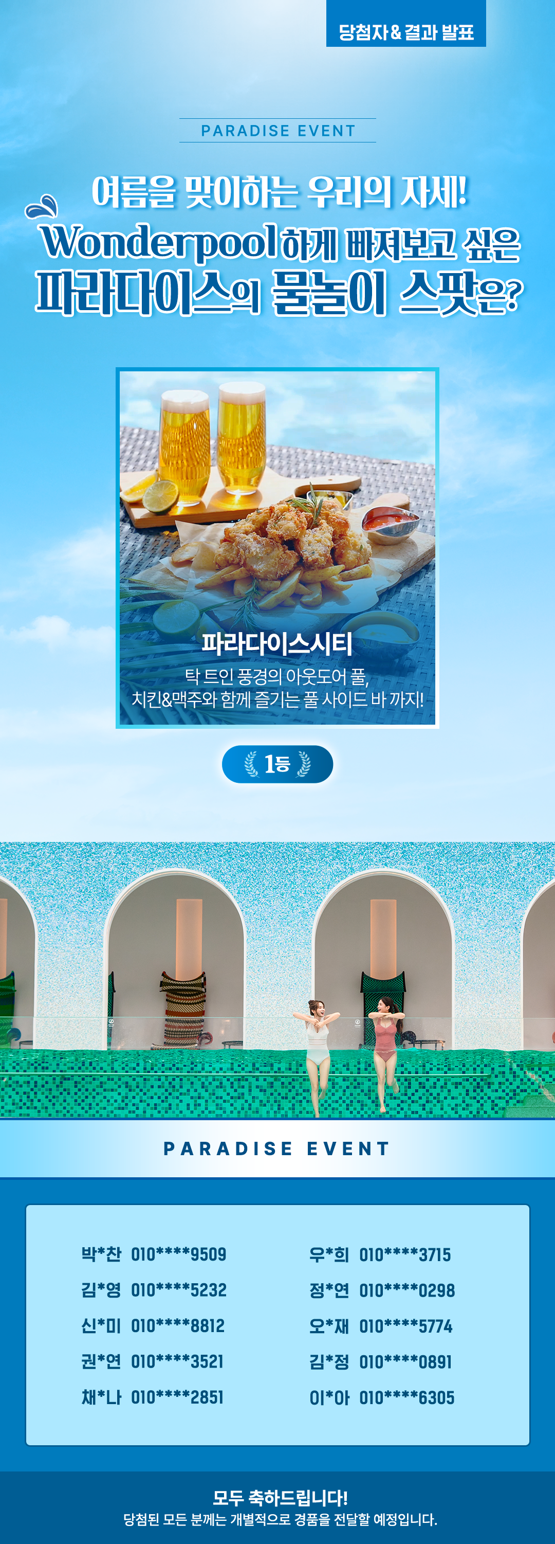 ‘여름맞이’ 가장 가보고 싶은 파라다이스의 물놀이 SPOT은? 투표 이벤트 결과 발표