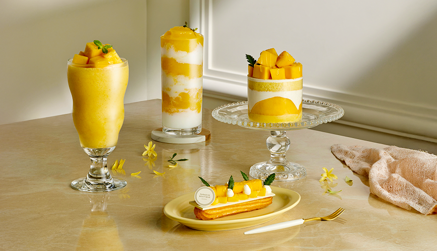 파라다이스시티의 유럽 감성을 담은 비밀정원, 가든카페는 다양한 디저트와 음료를 즐길 수 있는 베이커리 카페입니다. 이곳에서도 여름을 맞아 제철 망고로 완성한 다채로운 메뉴들이 준비되어 있는데요. 풍부한 과육과 부드러운 시트가 조화를 이루는 망고 쇼트 케이크와 상큼한 크림과 진한 망고 풍미가 어우러진 망고 에끌레어는 휴식의 순간을 더욱 달콤하게 만들어줍니다.