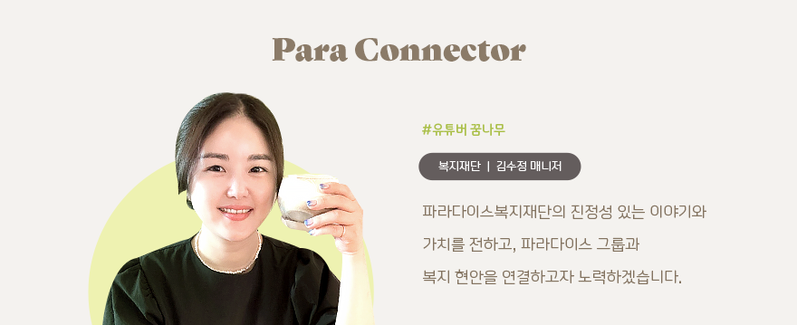 안녕하세요. 파라다이스복지재단의 진정성 있는 이야기와 가치를 전하는 파라 커넥터 김수정입니다. 제가 소개할 6월의 이야기는 파라다이스복지재단에서 2022년부터 이어오고 있는 ‘힐링파라다이스’입니다. 힐링파라다이스는 장애인과 그 가족들에게 파라다이스시티, 파라다이스 호텔 부산, 파라다이스 스파도고에서 특별한 휴식을 지원하는 사업입니다. 초여름의 싱그러움이 가득한 6월에는 새로운 경험과 재충전의 기회를 선물하며 파라다이스 스파 도고에서의 소중한 시간을 가졌습니다.
