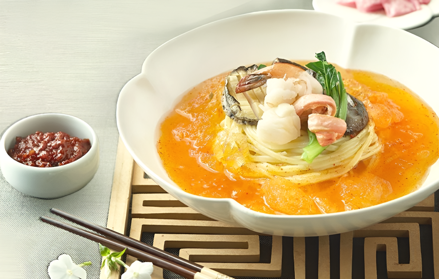 파라다이스 호텔 부산의 모던 차이니즈 다이닝 ‘남풍’은 정통 광동요리에 현대적인 감각을 더한 미식을 선보입니다. 그 중에서도 ‘어자해삼’은 남풍을 대표하는 시그니처 메뉴로, 직접 불린 건해삼을 전분에 살짝 튀겨낸 뒤, 톡톡 튀는 식감의 날치알 소스에 버무려내 겉은 바삭하고 속은 쫄깃한 이중 식감이 매력적입니다. 단정한 플레이팅과 깊은 풍미는 특별한 날의 식사로도 손색없죠. 여기에 여름 시즌 한정으로 만나볼 수 있는 ‘시그니처 냉짬뽕’은 무더위를 잊게 하는 별미로 자리잡고 있습니다. 신선한 해산물과 살얼음 육수가 어우러진 이 메뉴는, 조리장의 특제 양념장이 더해져 중국식 냉짬뽕 특유의 감칠맛을 풍부하게 살려냅니다. 남풍에서만 즐길 수 있는 바다의 깊이와 계절의 청량함, 두 가지 매력을 모두 경험해보세요.
