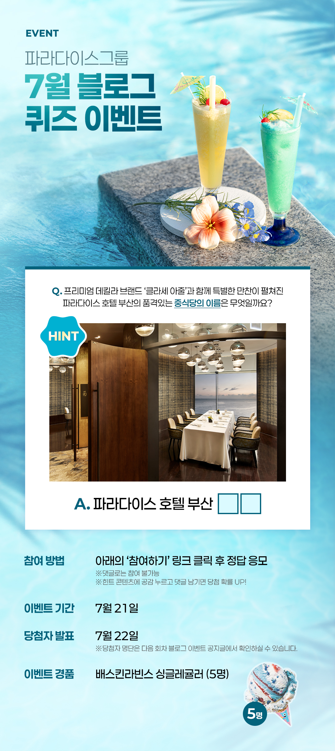 | 파라다이스그룹 7월 블로그 이벤트 (2회차) & 1회차 당첨자 발표 (4) | 2025.07.22 |