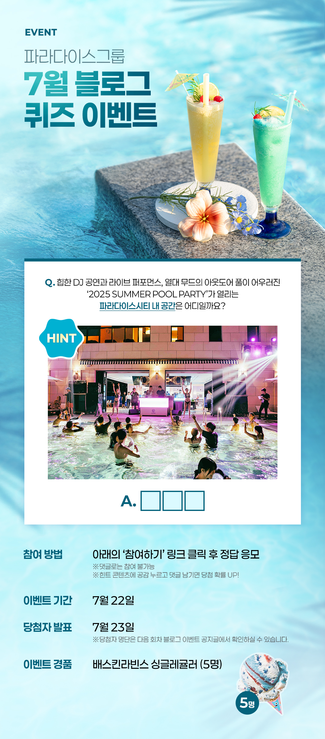 | 파라다이스그룹 7월 블로그 이벤트 (3회차) & 2회차 당첨자 발표 (6) | 2025.07.23 |