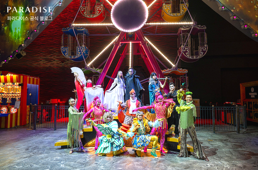 이어 8월 14일부터는 로비 ‘와우존’에서 파라다이스시티의 시그니처 공연인 가면무도회가 막을 올렸습니다. 세계적 작가 쿠사마 야요이의 ‘그레이트 자이언틱 펌킨’을 배경으로 퍼포먼스와 라이브 연주가 어우러져 한층 완성도 높은 무대를 선보입니다. 오는 8월 30일부터는 플라자 광장에서 ‘쇼커스(Show+Circus)’ 공연이 펼쳐지는데요. 쇼핑과 휴식이 결합된 공간 콘셉트에 맞춰 경쾌한 음악과 다양한 퍼포먼스를 선보입니다. 캐릭터와 세계관, 그리고 공간 스토리를 대폭 확장한 이번 공연은 2026년 3월 3일까지 이어지며, 아트테인먼트 리조트로서 파라다이스시티만의 독창적인 문화예술 경험을 선사할 예정입니다.