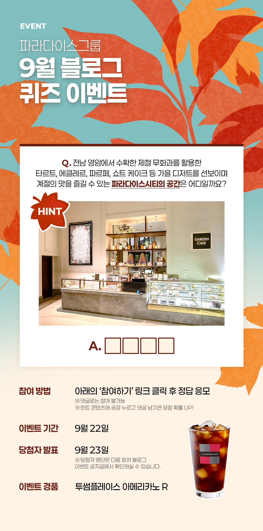 | [9월 사보 이벤트] 파라다이스 사내보 채널 친구 추가 이벤트 (0) | 2025.09.08 |