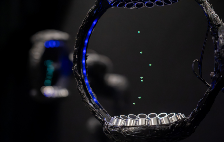 〈라 실피드 – 공기의 요정〉은 무용수의 동작을 파티클로 변환해 도시의 공기를 시각화한 작품입니다. 20년간의 대기 데이터를 반영해 LED 스크린 속 입자와 색이 끊임없이 변화하며, 마치 도시가 호흡하는 듯한 풍경을 보여주죠.