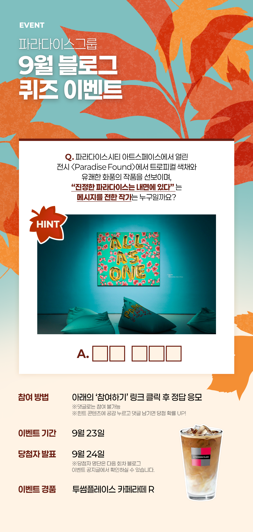 | [9월 사보 이벤트] 파라다이스 사내보 채널 친구 추가 이벤트 (0) | 2025.09.08 |