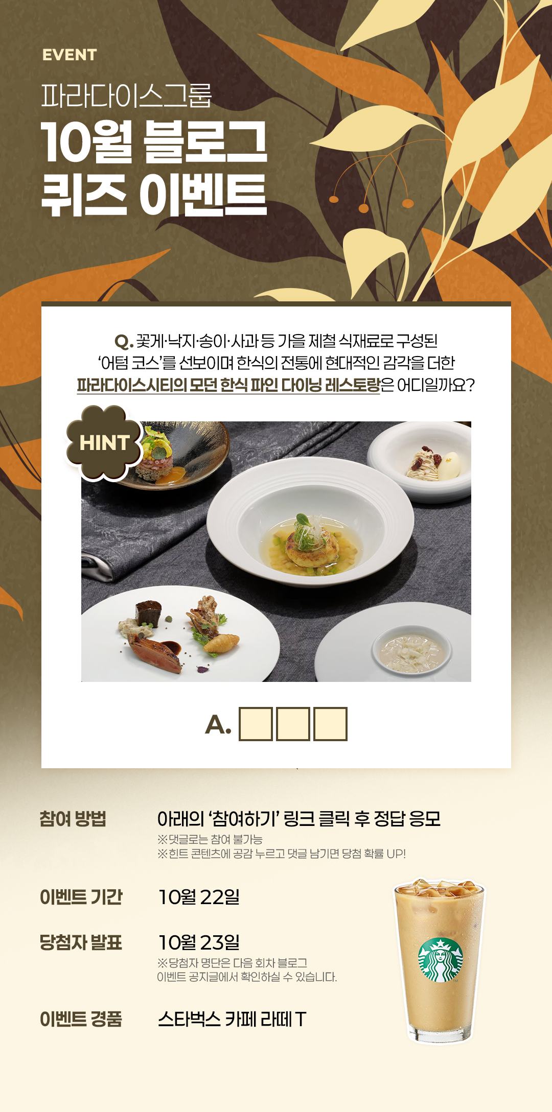 파라다이스그룹 블로그가 전하는 특별한 이야기로 가을을 만끽해보세요.