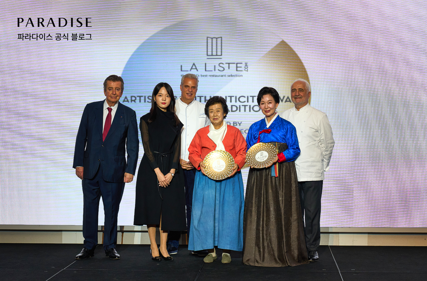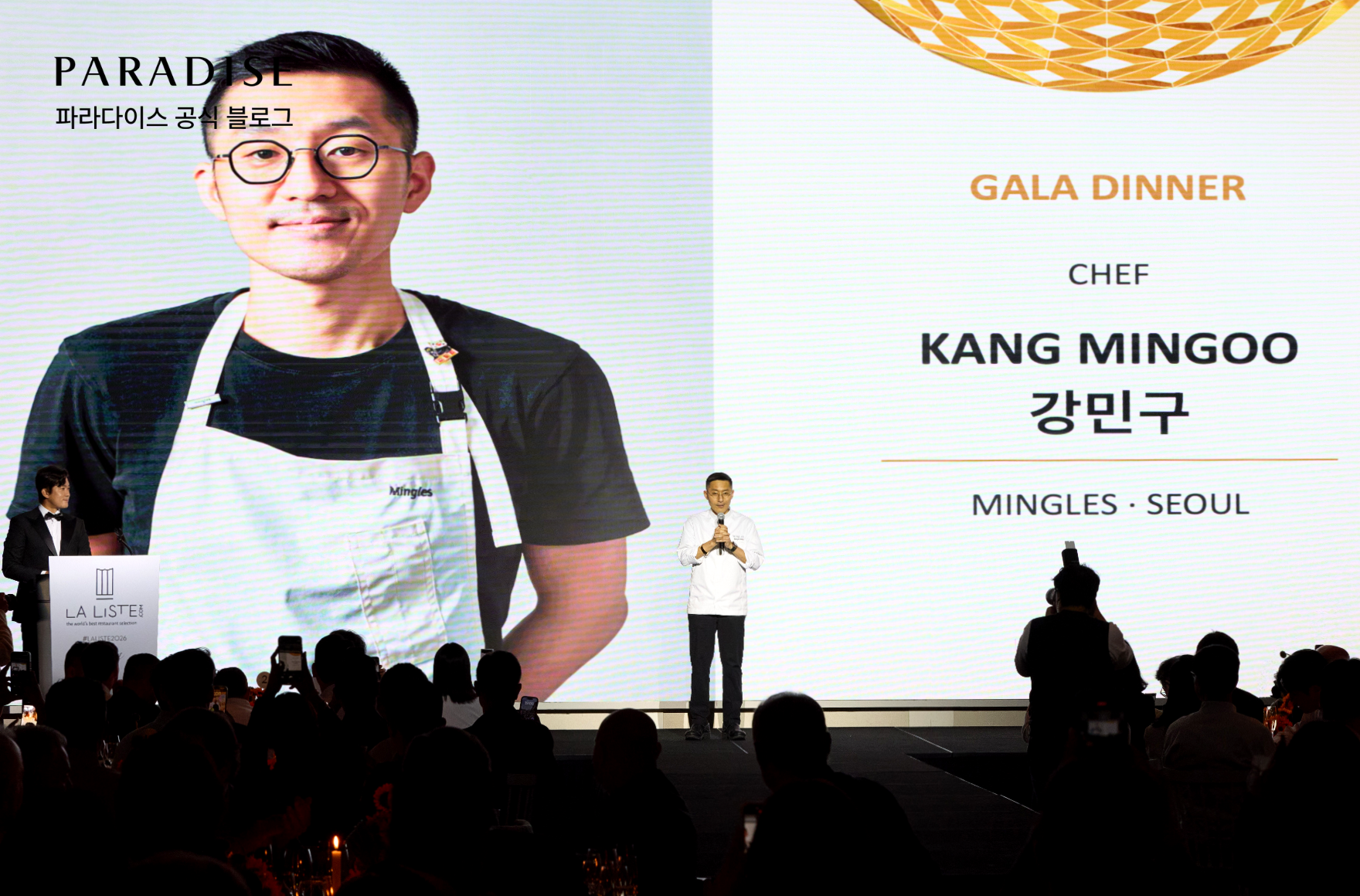 저녁에는 ‘라 리스트 2026 코리아 어워즈’시상식이 이어졌습니다. 라 리스트의 필립 포르 회장을 비롯해 세계적인 셰프 에릭 리페르, 기 사부아가 직접 자리를 빛냈으며, 국내에서는 강민구(밍글스), 강민철(강민철 레스토랑), 박성배(온지음), 박준우(오쁘띠베르), 안성재(모수), 여경래(홍보각), 이연복(목란) 등 한국을 대표하는 셰프들이 함께했습니다.