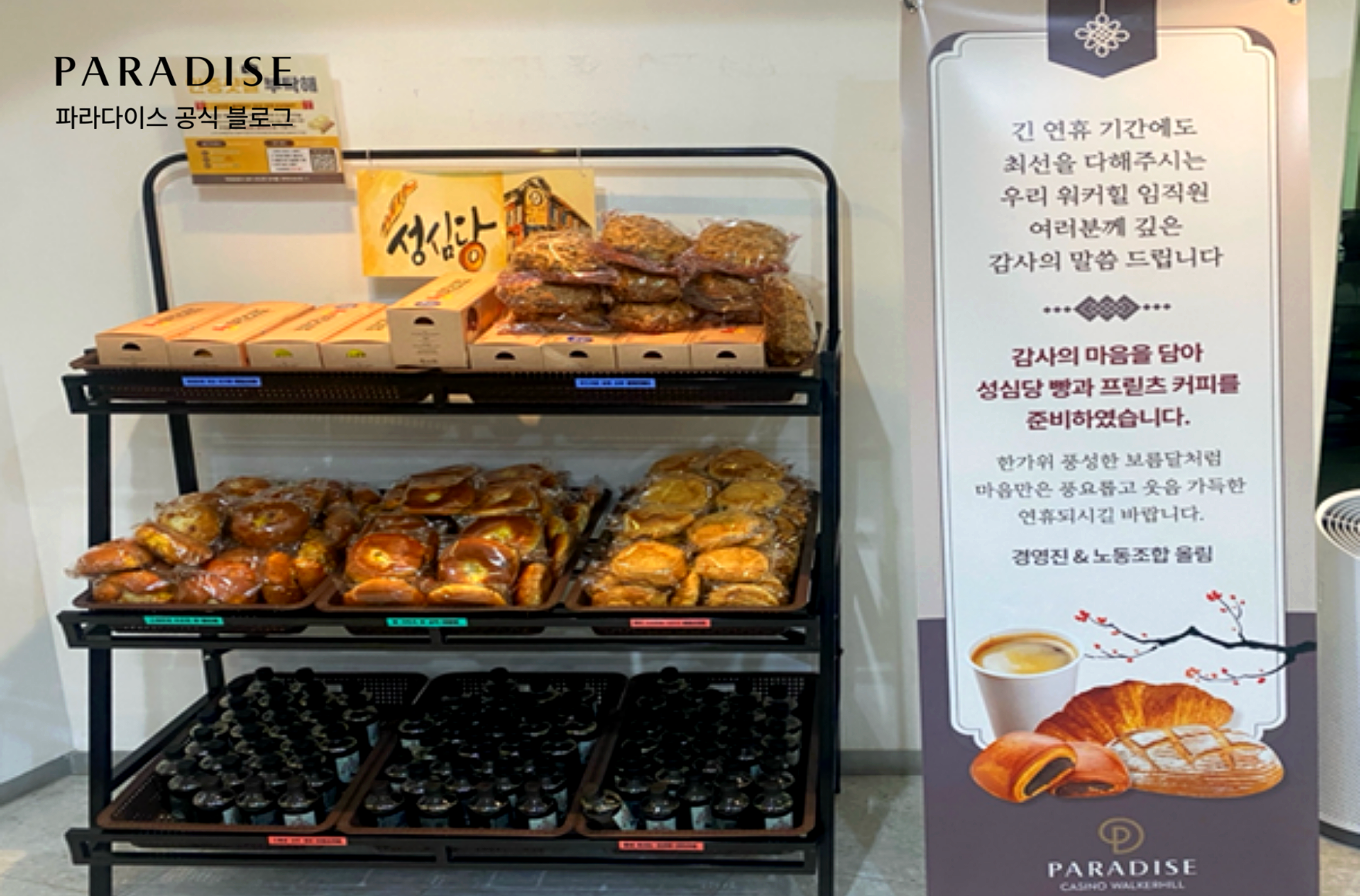 작지만 정성스럽게 마련한 도시락과 향긋한 커피 덕분에 이번 명절의 현장 분위기는 따뜻한 온기로 가득했는데요. 파라다이스그룹은 앞으로도 직원이 행복해야 고객도 행복하다는 믿음 아래, 구성원을 위한 다양한 프로그램을 이어갈 예정입니다.