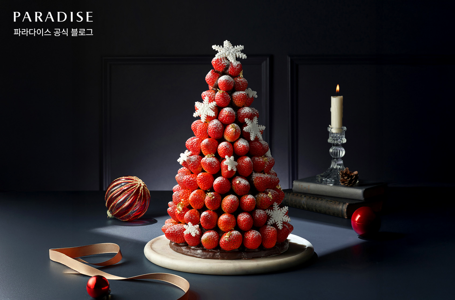 파라다이스의 대표 크리스마스 케이크인 시그니처 딸기 트리 케이크는 신선한 딸기를 층층이 쌓아 트리 형태로 구성한 것이 특징입니다. 촉촉한 시트와 부드러운 크림 위로 딸기가 풍성하게 올려져 있어 마치 크리스마스 정원을 담아낸 듯한 비주얼을 보여주는데요. 맛과 시각적 만족도를 모두 갖춘 구성으로 연말 테이블을 더욱 풍성하게 완성해 줍니다.