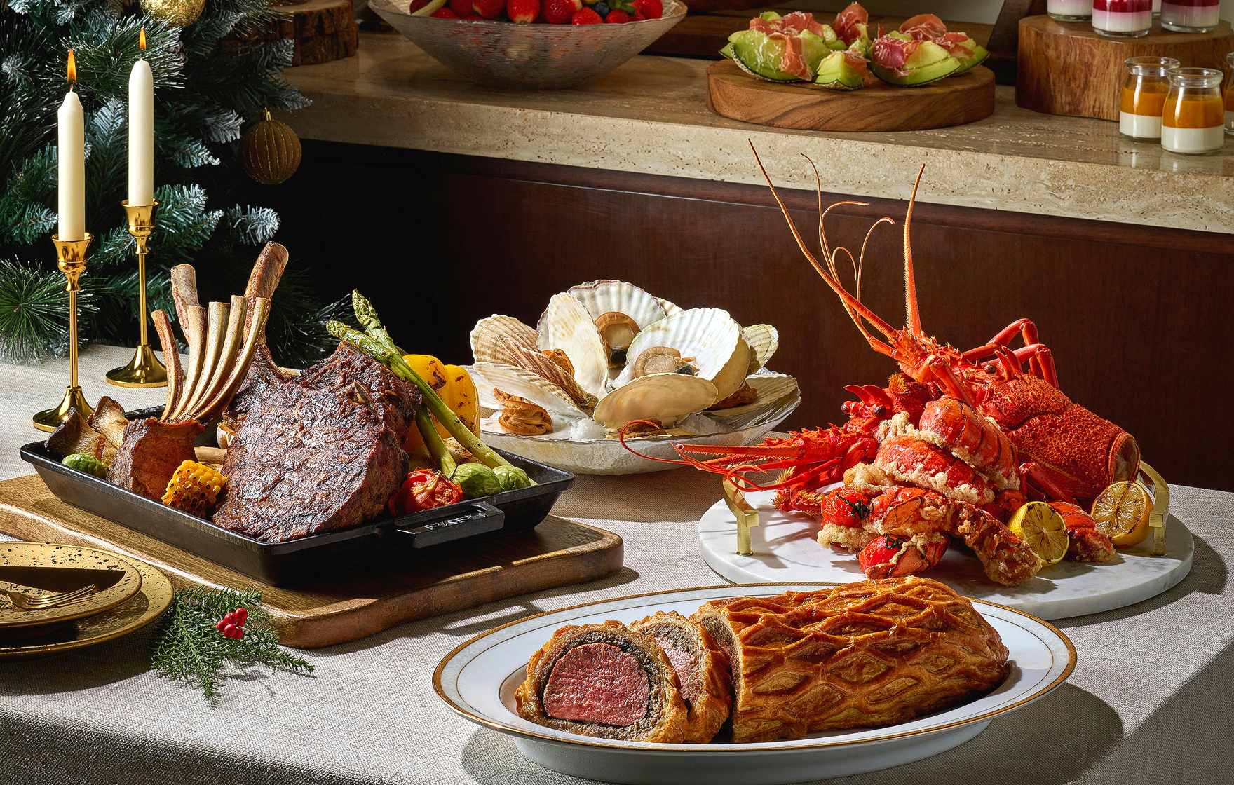연말 시즌에 선보이는 FESTIVE FEAST에서는 스페셜 메뉴가 더해져 한 해의 마지막 순간을 더욱 풍성하게 만들어줍니다. 오븐에 구워 고소함을 살린 랍스타 그라탕부터 샥스핀 오룡해삼 등 고급 식재료를 활용한 메뉴가 돋보이는데요. 여기에 맛보는 순간 녹아버리는 도로 사시미에 담백하고 부드럽게 씹히는 한우 사태 수육까지 다채로운 프리미엄 메뉴를 맛볼 수 있습니다. 남녀노소 모두의 취향을 만족시킬 수 있는 파라다이스 호텔 부산 온 더 플레이트에서 소중한 사람들과 잊지 못할 다이닝을 경험해 보시기 바랍니다.
