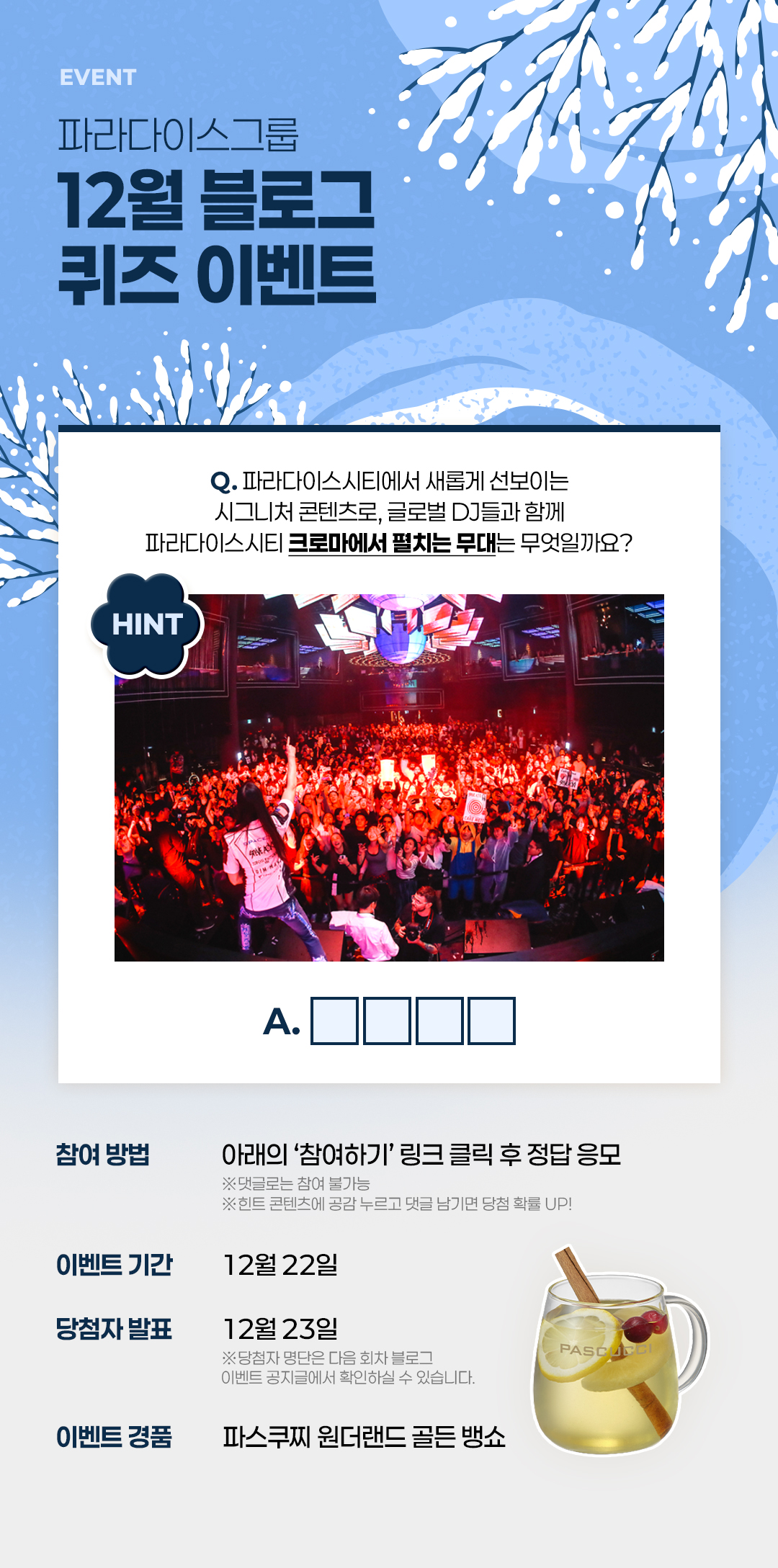 | 파라다이스그룹 12월 블로그 이벤트 (2회차) & 1회차 당첨자 발표 (7) | 2025.12.23 |