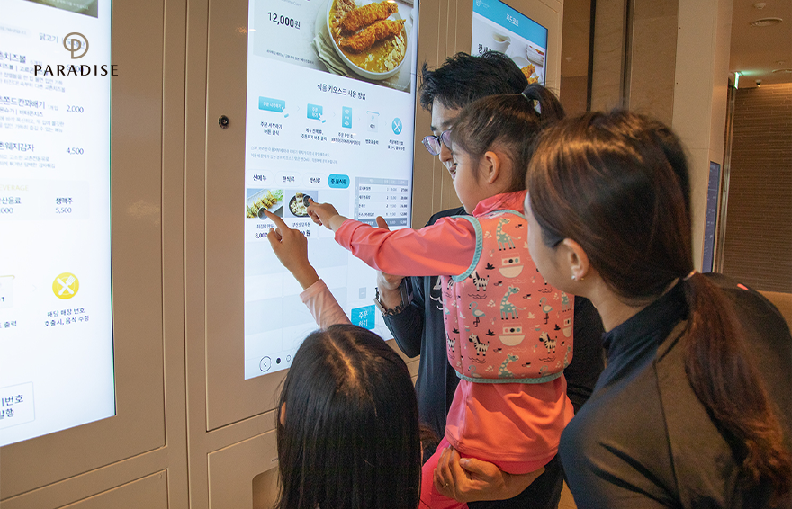 다양한 시설에 오가며 물놀이를 실컷 즐기다 보니 어느새 배가 고파진 네 식구는 푸드코트로 향했습니다. 이번 리뉴얼을 통해 스파 시설뿐 아니라 푸드코트에도 특별한 신메뉴가 등장했는데요. 파라다이스 호텔 & 리조트 셰프로부터 재료와 요리법을 전수 하여 만든 기장 미역국을 비롯해 왕갈비 설렁탕, 차돌 숙주라면 등 다양한 입맛을 만족시킬 수 있는 신메뉴를 선보였습니다. 이 밖에도 한식, 중식, 양식, 분식까지 메뉴 선택의 폭이 넓어 아이부터 어른까지 온 가족이 맛있는 시간을 즐길 수 있습니다. 맛있어 보이는 메뉴가 너무 많다 보니 네 식구는 키오스크 앞에 서서 행복한 고민의 시간을 보냈는데요. 네 식구는 과연 어떤 메뉴를 골랐을까요?
