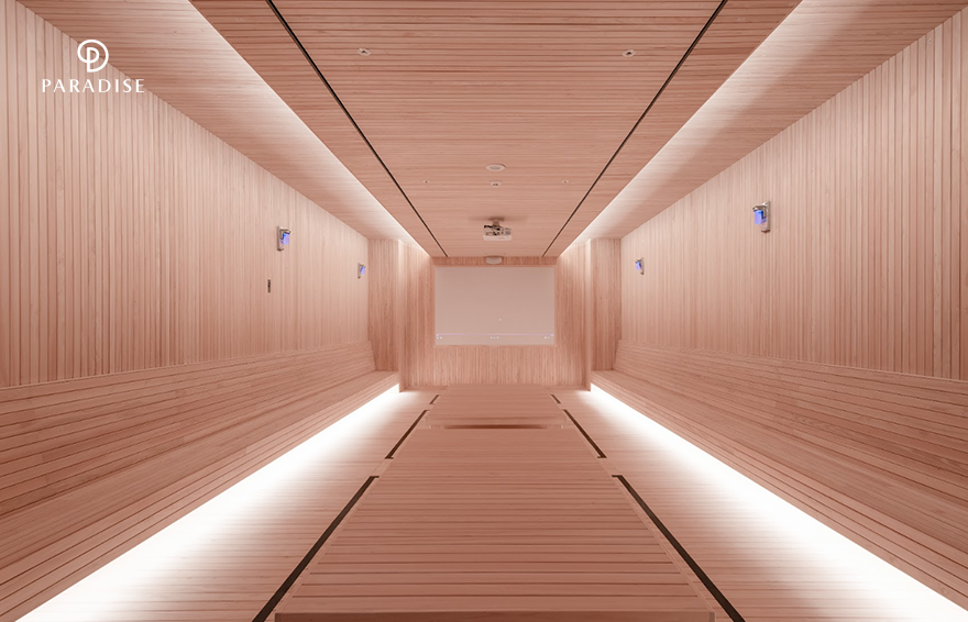 두 사람은 가장 먼저 28℃의 편백나무룸에 들어가 가볍게 찜질을 시작했습니다. 품질 좋은 후쿠시마현의 편백나무를 사용한 이 방은 마치 숲에서 산림욕을 하는 기분을 선사해주었는데요. 조용히 혼자 휴식하기도 좋지만 나란히 앉아 함께 시간을 보내기에도 안성맞춤이었죠. 이제 본격적으로 찜질을 즐기기 위해 65℃의 황토룸으로 이동합니다. 다양한 미네랄을 함유한 황토가 원적외선 효과와 함께 혈액순환을 도와 피부미용과 해독 작용, 면역력 강화에도 도움이 된다고 하는데요. 방에 들어온 지 얼마 되지 않아 파라디안의 얼굴에 기분 좋은 땀이 송글송글 맺히기 시작했습니다.