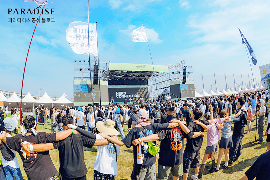이번 ‘ASIAN POP FESTIVAL 2025’의 유일한 야외공간인 컬처파크는 수많은 관객과 함께 페스티벌의 열기로 가득 찼습니다. 잔디광장 한가운데 자리한 파라다이스 스테이지에서는 낮부터 다양한 아티스트들의 공연이 이어지며 모두의 기대감을 끌어올렸는데요.